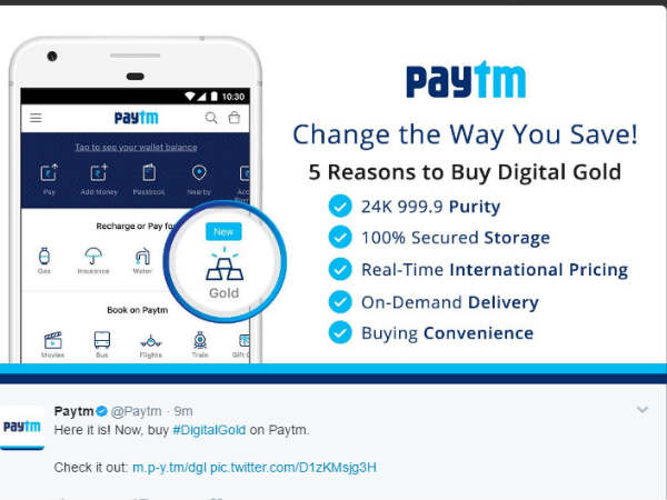 ಅಂತರಾಷ್ಟ್ರೀಯ ದರದಲ್ಲಿ ಚಿನ್ನ ಮಾರಾಟ ಮಾಡುವುದಾಗಿ ಪೇಟಿಎಂ ಹೇಳಿದೆ!!
