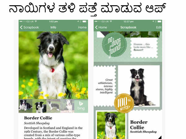 ಮೈಕ್ರೋಸಾಫ್ಟ್ ಅಭಿವೃದ್ದಿಪಡಿಸಿರುವ 'Fetch' ಆಪ್ ಅತ್ಯಾಧುನಿಕವಾಗಿ ಕಾರ್ಯನಿರ್ವಹಿಸಲಿದ್ದು. ನಾಯಿಗಳ ಒಂದು ತಳಿ ಮತ್ತು ಇನ್ನೊಂದು ತಳಿಗೆ ವ್ಯತ್ಯಾಸ ಯಾವ ರೀತಿಯಲ್ಲಿದೆ ಎಂಬುದನ್ನು ಸಹ ತಿಳಿಸುತ್ತದೆ. ಅಥವಾ ಬಣ್ಣದಲ್ಲೂ ಸಹ ಹೋಲಿಕೆ ವ್ಯಾತ್ಯಾಸಗಳಿದ್ದರೂ ನಾಯಿಯ ತಳಿ ಯಾವುದು ಎಂದು ತಿಳಿಸುತ್ತದೆ.