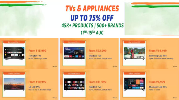 ಫ್ಲಿಪ್ ಕಾರ್ಟ್ ಸ್ವಾತಂತ್ರ್ಯ ದಿನಾಚರಣೆ ಸೇಲ್- ಸ್ಮಾರ್ಟ್ ಟಿವಿಗಳಿಗೆ 60%ದ ವರೆಗೆ ರಿಯಾಯಿತಿ