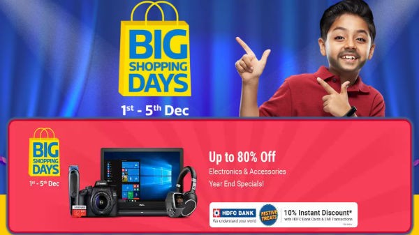ಡಿಸೆಂಬರ್ 1 ರಿಂದ ಡಿಸೆಂಬರ್ 5-2019 ರ ವರೆಗೆ ಫ್ಲಿಪ್ ಕಾರ್ಟ್ ನಲ್ಲಿ ಬಿಗ್ ಶಾಪಿಂಗ್ ಡೇ ಸೇಲ್ ನಡೆಯಲಿದೆ. ಕ್ರಿಸ್ ಮಸ್ ಪ್ರಯುಕ್ತ ಗ್ರಾಹಕರಿಗೆ ಗುಡ್ ನ್ಯೂಸ್ ನೀಡುತ್ತಿರುವ ಫ್ಲಿಪ್ ಕಾರ್ಟ್ ನಲ್ಲಿ ಆಕರ್ಷಕ ಆಫರ್ ಗಳು ಲಭ್ಯವಿದೆ. ಕೇವಲ ಸ್ಮಾರ್ಟ್ ಫೋನ್ ಗಳಿಗೆ ಮಾತ್ರವಲ್ಲ ಬದಲಾಗಿ ಹಲವು ಎಲೆಕ್ಟ್ರಾನಿಕ್ ಪ್ರೊಡಕ್ಟ್ ಗಳು ಸೇರಿದಂತೆ ಹಲವು ಆಕ್ಸಸರೀಸ್ ಗಳಿಗೆ ಫ್ಲಿಪ್ ಕಾರ್ಟಿನಲ್ಲಿ ಭರ್ಜರಿ ಆಫರ್ ಗಳ ಸುರಿಮಳೆಯೇ ಇದೆ. 80% ದ ವರೆಗೆ ಎಲೆಕ್ಟ್ರಾನಿಕ್ ಮತ್ತು ಆಕ್ಸಸರೀಸ್ ಗಳಿಗೆ ಈ ಸೇಲ್ ನಲ್ಲಿ ರಿಯಾಯಿತಿ ಲಭ್ಯವಿದೆ.