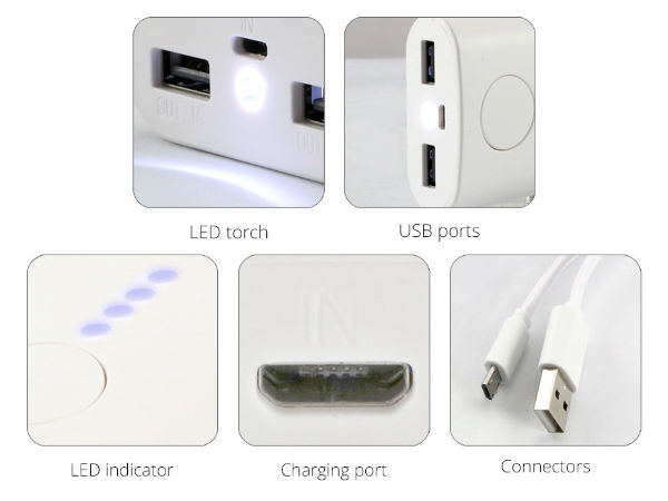 ಝೆಬ್ರೋನಿಕ್ಸ್ ಪವರ್ಬ್ಯಾಂಕ್ನಲ್ಲಿ 1A ಮತ್ತು 2A ವಿದ್ಯುತ್ ಪ್ರವಾಹ ನೀಡಬಲ್ಲ ಎರಡು ಯುಎಸ್ಬಿ ಪೋರ್ಟ್ ಲಭ್ಯವಿವೆ. ಇದರಲ್ಲಿ ಎಲ್ಇಡಿ ಟಾರ್ಚ್ ಕೂಡ ಲಭ್ಯವಿದ್ದು, ಟಾರ್ಚ್ ಲೈಟ್ನಂತೆಯೋ ಇದನ್ನು ಬಳಕೆ ಮಾಡಬಹುದು.!!