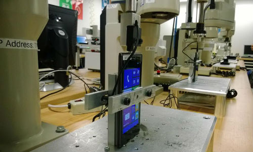 ಸ್ಮಾರ್ಟ್ಫೋನ್ ಪರೀಕ್ಷೆಯ ಫಲಿತಾಂಶಗಳನ್ನು ದಾಖಲು ಮಾಡುತ್ತಿರುವ ಕಂಪ್ಯೂಟರ್ಗಳು.