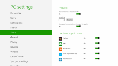 ಮೈಕ್ರೋಸಾಫ್ಟ್ ತನ್ನಯ ನೂತನ ವಿಂಡೋಸ್ 8 ಆಪರೇಟಿಂಗ್ ಸಿಸ್ಟಂನಲ್ಲಿ ಹೊಸ ಮಾದರಿಯ ಶೇರಿಂಗ್ ಆಪ್ಷನ್ ನೀಡಲಾಗಿದೆ. ಇದರ ಮೂಲಕ ಬಳಕೆದಾರರು ದತ್ತಾಂಶಗಳ ಜೊತೆಗೆ ಪಿಕ್ಚರ್ಗಳನ್ನು ಕೂಡಾ ಶೇರ್ ಮಾಡಬಹುದಾಗಿದೆ. ಶೇರಿಂಗ್ ಆಪ್ಷನ್ಗಾಗಿ ನೀವು ನಿಮ್ಮ ಕೀಬೋರ್ಡ್ನಲ್ಲಿ ವಿಂಡೋ ಕೀ ಜೊತೆಯಲ್ಲಿ ಹೆಚ್ ಕೀ ಪ್ರೆಸ್ ಮಾಡಿದಲ್ಲಿ ನಿಮ್ಮ ಎದುರು ಎಲ್ಲಾ ರೀತಿಯ ಶೇರಿಂಗ್ ಆಪ್ಷನ್ ಓಪನ್ ಆಗಿಬಿಡುತ್ತದೆ.