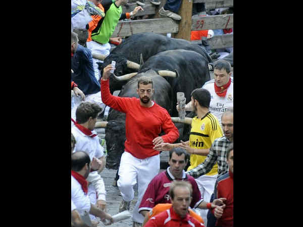 ಪಾಂಪಿಲೋನಾದಲ್ಲಿ ಗೂಳಿಗಳ ಓಟ ಸ್ಪರ್ಧೆಯನ್ನು ನಡೆಸುತ್ತಿದ್ದು ಇಲ್ಲೊಬ್ಬ ವ್ಯಕ್ತಿ ಓಡುತ್ತಿರುವ ಗೂಳಿಗಳೊಂದಿಗೆ ಈತ ಸೆಲ್ಫಿ ತೆಗೆಸಿಕೊಂಡಿರುವುದು.