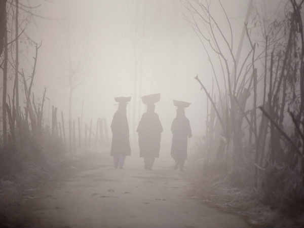 ಕಾಶ್ಮೀರಿ ಮಹಿಳೆಯರು ಮಂಜಿನ ವಾತಾವರಣದಲ್ಲೂ ತಮ್ಮ ನಿತ್ಯ ಕಾಯಕವನ್ನು ನಡೆಸುತ್ತಿರುವುದು