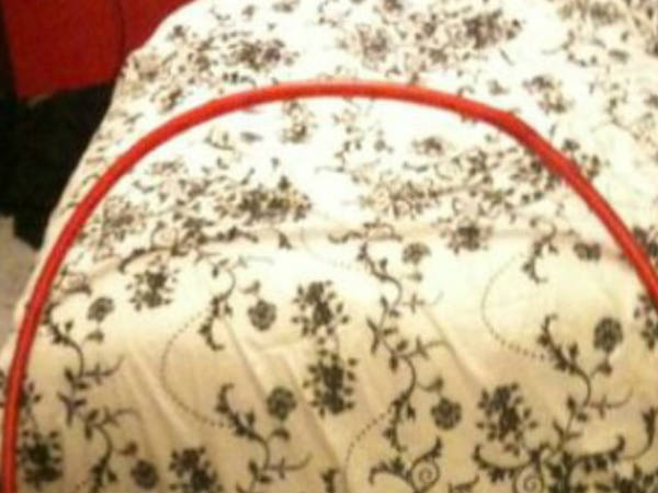 ಈ ಚಿತ್ರದಲ್ಲಿ ಹಾಸಿಗೆ ಬಳಿ ಹೊಲಾ ಲೂಪ್ ವೊಂದನ್ನು ಇರಿಸಲಾಗಿದೆ. ಹೂಲಾ ಲೂಪ್ ಎಂದರೆ ಸೊಂಟದ ಮೂಲಕ ಸುತ್ತಿಸುವ ಒಂದು ಬಗೆಯ ರಿಂಗ್, ಅದು ಕೆಂಪು ಬಣ್ಣದಲ್ಲಿ ಇರುವಕಾರಣ ಅದನ್ನು ಸರ್ಕಲ್ ಮಾಡಿರುವ ರೀತಿ ಕಾಣುತ್ತಿದೆ.