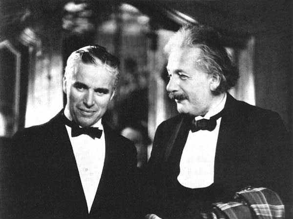 ಭಾಷೆಯೇ ಇಲ್ಲದೇ ಹಾಸ್ಯ ಮಾಡುತ್ತ ಪ್ರಖ್ಯಾತ ಹಾಸ್ಯಗಾರ ಎನಿಸಿಕೊಂಡ ಚಾರ್ಲಿ ಚಾಪ್ಲಿನ್'ರವರು ಐನ್ಸ್ಟೈನ್'ರೊಂದಿಗೆ ಇರುವ ಫೋಟೋ.