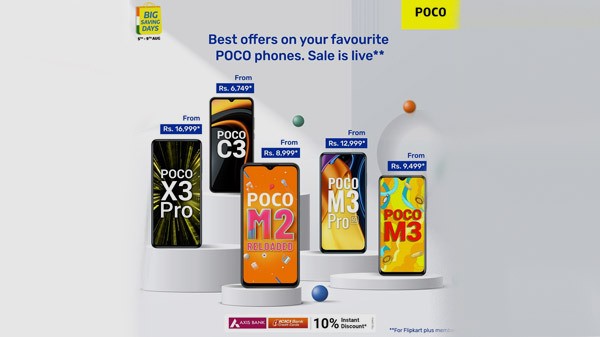 ಫ್ಲಿಪ್ಕಾರ್ಟ್ ಆಯೋಜಿಸಿರುವ ಬಿಗ್ ಸೇವಿಂಗ್ ಡೇಸ್ 2021 ಸೇಲ್ ಇದೀಗ ಗ್ರಾಹಕರಿಗೆ ಮುಕ್ತವಾಗಿದೆ. ಈ ಮಾರಾಟ ಮೇಳವು ಇದೇ ಆಗಷ್ಟ್ 9ರ ವರೆಗೂ ಚಾಲ್ತಿ ಇರಲಿದೆ. ಈ ಬಿಗ್ ಸೇವಿಂಗ್ ಡೇಸ್ 2021 ಮಾರಾಟವು ಪೊಕೊ ಕಂಪನಿಯ ಪೊಕೊ ಎಂ3, ಪೊಕೊ ಎಂ2, ಪೊಕೊ ಎಂ3 ಪ್ರೊ 5G, ಪೊಕೊ C3, ಪೊಕೊ F3 GT ಸೇರಿದಂತೆ ಇನ್ನಿತರೆ ಕೆಲವು ಫೋನ್ಗಳು ದೊಡ್ಡ ಡಿಸ್ಕೌಂಟ್ ಪಡೆದಿವೆ. ಅವುಗಳ ರಿಯಾಯಿತಿ ಬಗ್ಗೆ ಮಾಹಿತಿ ಇಲ್ಲಿದೆ.