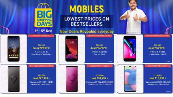 ಫ್ಲಿಪ್ ಕಾರ್ಟ್ ಮೊಬೈಲ್ ಬೊನಾನ್ಜ ಸೇಲ್ ಮತ್ತೆ ಪ್ರಾರಂಭವಾಗುತ್ತಿದ್ದು ಬೇರೆಬೇರೆ ಬ್ರ್ಯಾಂಡಿನ ಸ್ಮಾರ್ಟ್ ಫೋನ್ ಗಳಿಗೆ ಆಕರ್ಷಕ ಬೆಲೆಯನ್ನು ನೀಡಲಾಗುತ್ತಿದೆ. ಡಿಸೆಂಬರ್ 1 ರಿಂದ ಡಿಸೆಂಬರ್ 5 -2019 ರ ವರೆಗೆ ಈ ಸೇಲ್ ನಡೆಯಲಿದ್ದು ಇದನ್ನು ಬಿಗ್ ಶಾಪಿಂಗ್ ಡೇಸ್ ಎಂದು ಕರೆಯಲಾಗಿದೆ. ಪ್ರೈಮ್ ಸದಸ್ಯರು ಸೇಲಿನ ಲಾಭವನ್ನು ನವೆಂಬರ್ 30 ರ 8 ಘಂಟೆಯಿಂದಲೇ ಪಡೆದುಕೊಳ್ಳಬಹುದು. ಈ ಸಮಯದಲ್ಲಿ ಕೆಲವು ಹೊಸ ವಸ್ತುಗಳು ಕೂಡ ಬಿಡುಗಡೆಗೊಳ್ಳುವ ಸಾಧ್ಯತೆ ಇದೆ.