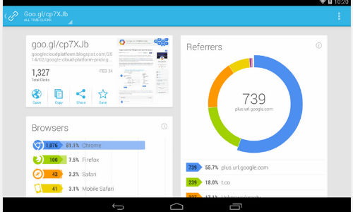 ಇಲ್ಲಿಯವರಗೆ ಡೆಸ್ಕ್ಟಾಪ್ ಬಳಕೆದಾರರಿಗೆ ಲಭ್ಯವಿದ್ದ ಯುಆರ್ಎಲ್ ಶಾರ್ಟ್ನರ್ ಸೇವೆಯನ್ನು ಗೂಗಲ್ ಈಗ ಆಂಡ್ರಾಯ್ಡ್ ಬಳಕೆದಾರರಿಗೆ ವಿಸ್ತರಿಸಿದೆ. ಗೂಗಲ್ ತನ್ನ ಯುಆರ್ಎಲ್ ಶಾರ್ಟ್ನರ್ ಆಪ್ನ್ನು ಆಂಡ್ರಾಯ್ಡ್ ಪ್ಲೇ ಸ್ಟೋರ್ನಲ್ಲಿ ಬಿಡುಗಡೆ ಮಾಡಿದೆ.