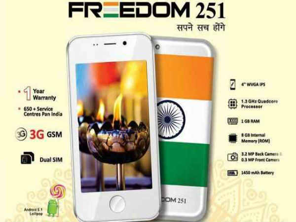 ರೂ.251 ಕ್ಕೆ 'Freedom 251' ಸ್ಮಾರ್ಟ್ಫೋನ್ ಭಾರತದಲ್ಲಿ