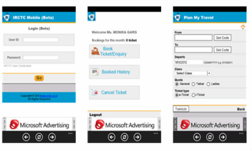 ಎಸ್ಎಂಎಸ್ ಮೂಲಕ ರೇಲ್ವೆ ಟಿಕೆಟ್ ಬುಕ್ ಮಾಡುವ ಸೇವೆಯನ್ನುಆರಂಭಿಸಿದ ಭಾರತೀಯ ರೇಲ್ವೆ ಇಲಾಖೆ ಇದೀಗ ವಿಂಡೋಸ್ 8 ಆಪರೇಟಿಂಗ್ ಸಿಸ್ಟಂ ಹೊಂದಿದ ಸ್ಮಾರ್ಟ್ಫೋನ್ ಮತ್ತು ಡೆಸ್ಕ್ಟಾಪ್ ಬಳಕೆದಾರರಿಗೆ ವಿಂಡೋಸ್ ಆಪ್ನ್ನು ಬಿಡುಗಡೆ ಮಾಡಿದೆ.