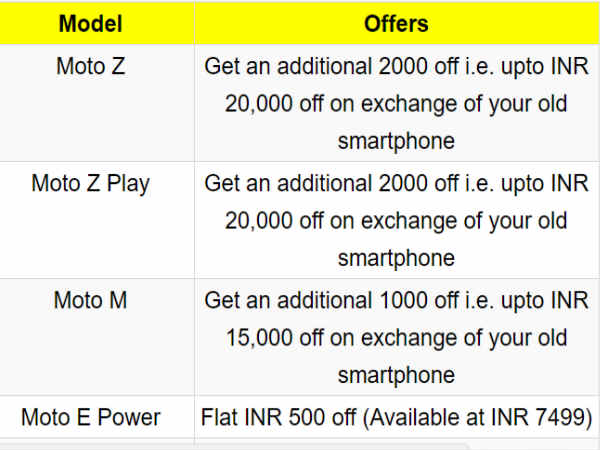 ಭಾರಿ ಡಿಸ್ಕೌಂಟ್ಸ್ ಹೊಂದಿ ಬರುತ್ತಿರುವ ಅತ್ಯುತ್ತಮ ಸ್ಮಾರ್ಟ್ಫೋನ್ಗಳನ್ನು ಖರೀದಿಸಲು ಇದು ಅತ್ಯುತ್ತಮ ಸಮಯವಾಗಿದ್ದು, ಕೆಳಗಿನ ಚಿತ್ರದಲ್ಲಿ ಮೊಟೊ ಯಾವ ಯಾವ ಸ್ಮಾರ್ಟ್ಫೋನ್ ಮೇಲೆ ಎಷ್ಟೆಷ್ಟು ಆಫರ್ ನೀಡಿದೆ ಎಂಬುದನ್ನು ತಿಳಿಯಿರಿ.