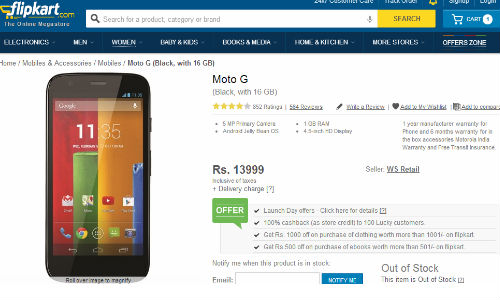 ಮೋಟೋ ಜಿ ಮೊದಲ ದಿನವೇ ಫ್ಲಿಪ್ಕಾರ್ಟ್ನಲ್ಲಿ ಔಟ್ ಆಫ್ ಸ್ಟಾಕ್!