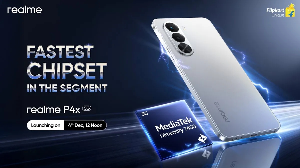 ನಾವು ಈಗಾಗಲೇ ತಿಳಿದಿರುವಂತೆ, ದೇಶದಲ್ಲಿ Realme P4x 5G ಫೋನ್ ಅನ್ನು ಇದೇ ಡಿಸೆಂಬರ್ 4 ರಂದು ಮಧ್ಯಾಹ್ನ 12 ಗಂಟೆಗೆ ಅಧಿಕೃತವಾಗಿ ಪರಿಚಯಿಸಲಾಗುಗುತ್ತದೆ. ಇದರ ಜೊತೆಗೆ ಕಂಪನಿಯು ತನ್ನ ಹೊಸ ಸ್ಮಾರ್ಟ್ವಾಚ್ Realme Watch 5 ಸಾಧನವನ್ನೂ ಅನಾವರಣಗೊಳಿಸುತ್ತದೆ. Realme ಮತ್ತು Flipkart ಅವರ ವೇದಿಕೆಗಳಲ್ಲಿ ಈಗಾಗಲೇ ಈ ಸಾಧನಕ್ಕೆ ಸಂಬಂಧಿಸಿದ ಟೀಸರ್ಗಳು ಲಭ್ಯವಿದ್ದು, ಈಗಾಗಲೇ ಹಲವಾರು ವೈಶಿಷ್ಟ್ಯಗಳು ದೃಢಪಟ್ಟಿವೆ.