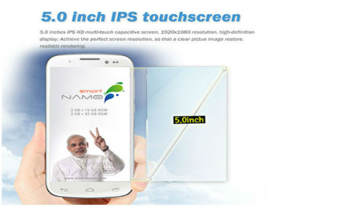 ಬಿಜೆಪಿ ಪ್ರಧಾನಿ ಅಭ್ಯರ್ಥಿ ನರೇಂದ್ರ ಮೋದಿ ಹೆಸರಿನಲ್ಲಿ ಮಾರುಕಟ್ಟೆ ಬರಲಿರುವ ಸ್ಮಾರ್ಟ್ಫೋನ್ ಈಗ ಆನ್ಲೈನ್ ಶಾಪಿಂಗ್ ತಾಣದಲ್ಲಿ ಲಿಸ್ಟ್ ಆಗಿದೆ.ಸ್ಮಾರ್ಟ್ನಮೋ ಕೇಸರಿ ಒನ್,ಸ್ಮಾರ್ಟ್ನಮೋ ಕೇಸರಿ 2 ಹೆಸರಿನಲ್ಲಿ ಸ್ಮಾರ್ಟ್ಫೋನ್ ಮಾರುಕಟ್ಟೆಗೆ ಬರಲಿದ್ದು ಆನ್ಲೈನ್ ತಾಣ ಸ್ನಾಪ್ಡೀಲ್ನಲ್ಲಿ999 ರೂ. ನೀಡಿ ಮುಂಗಡ ಬುಕ್ಕಿಂಗ್ ಮಾಡಬಹುದಾಗಿದೆ.