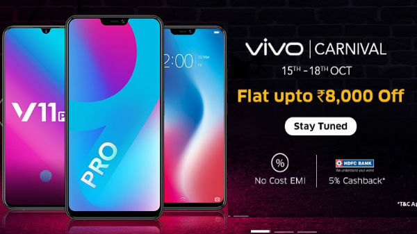 ದೀಪಾವಳಿ ಹಬ್ಬದ ಸಡಗರಕ್ಕಾಗಿ ಅಕ್ಟೋಬರ್ 15 ರಿಂದ ವಿವೋ ಸಂಸ್ಥೆ ಸೀಸನ್ ಸೇಲ್ ನ್ನು ಆರಂಭಿಸಲಿದೆ. ದೀಪಾವಳಿ ಕಾರ್ನಿವಲ್ ಸೇಲ್ ಅಕ್ಟೋಬರ್ 18 ರ ವರೆಗೆ ನಡೆಯಲಿದ್ದು shop.vivo.com/in ನ ಆನ್ ಲೈನ್ ಸ್ಟೋರ್ ನಲ್ಲಿ ಮಾರಾಟ ಪ್ರಕ್ರಿಯೆ ನಡೆಯಲಿದೆ.ಕಂಪನಿಯು ಆಕರ್ಷಕ ರಿಯಾಯಿತಿಗಳು ಕೂಪಲ್ ಡೀಲ್ಸ್ ಮತ್ತು ಕ್ಯಾಷ್ ಬ್ಯಾಕ್ ಆಫರ್ ಗಳನ್ನು ಕೆಲವು ಆಯ್ದ ವಿವೋ ಸ್ಮಾರ್ಟ್ ಫೋನ್ ಗಳಿಗೆ ನೀಡುತ್ತಿದೆ. ಅದರಲ್ಲಿ ಇತ್ತೀಚೆಗೆ ಬಿಡುಗಡೆಗೊಂಡಿರುವ ವಿ9 ಪ್ರೋ ಮತ್ತು ವಿ11 ಪ್ರೊ ಕೂಡ ಸೇರಿದೆ.