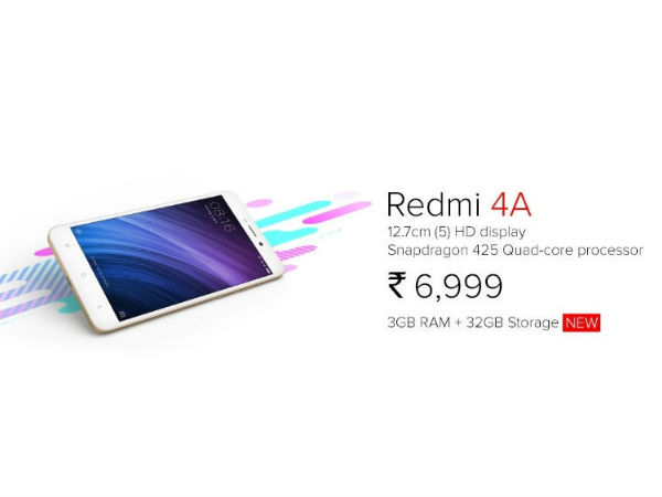 ನೂತನ ರೆಡ್ಮಿ 4 A ಪೋನಿನಲ್ಲಿ 2GB RAM ಹಾಗೂ 16GB ಇಂಟರ್ನಲ್ ಮೆಮೊರಿ ಬದಲಿಗೆ 3GB RAM/32GB ಇಂಟರ್ನಲ್ ಮೆಮೊರಿಯನ್ನು ಕಾಣಬಹುದಾಗಿದೆ.
