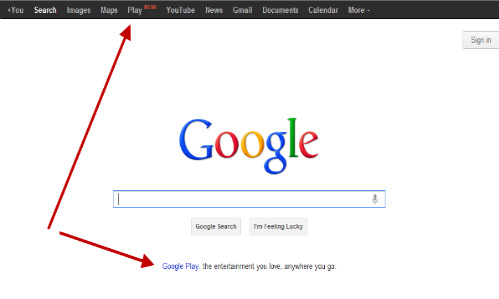 ಗೂಗಲ್ ನ ಆನ್ಲೈನ್ ಆಂಡ್ರಾಯ್ಡ್ ಮಳಿಗೆ ಗೂಗಲ್ ಪ್ಲೇ ಅನ್ನು ಗೂಗಲ್ ತನ್ನ ಟೂಲ್ ಬಾರ್ ಗೆ ಸೇರಿಸಿದೆ.