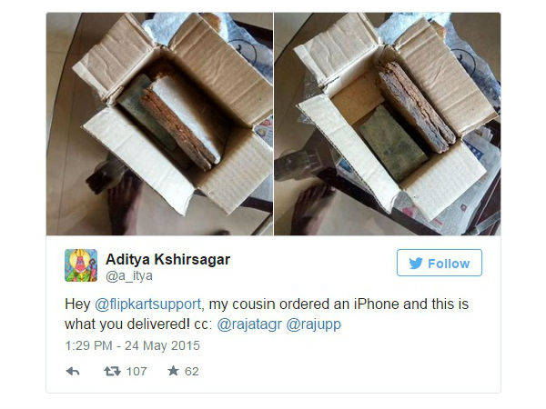 ಫ್ಲಿಪ್ಕಾರ್ಟ್ ಗ್ರಾಹಕರಿಗೆ ಐಫೋನ್ ಬದಲಿಗೆ ಇಟ್ಟಿಗೆ ನೀಡಿ ಸನ್ಮಾನಿಸಿದೆ.