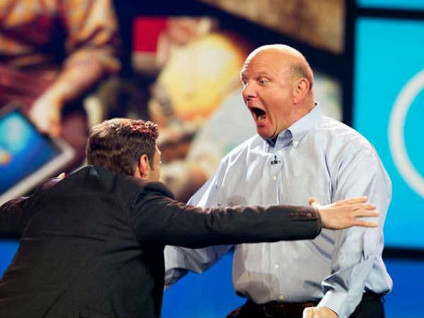 ರಿಯಾನ್ ಸೀಕ್ರೆಸ್ಟ್ ಮತ್ತು ಸ್ಟೀವ್ ಬಾಲ್ಮರ್ ಅಪ್ಪುಗೆಯ ದೃಶ್ಯ