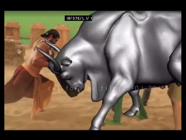 ಬಾಹುಬಲಿ ಸಿನಿಮಾ ನಿರ್ಮಾಣದ ಗೂಳಿ ಹೋರಾಟದ ದೃಶ್ಯಾವಳಿಯಲ್ಲಿ ಇರುವ ಸ್ಥಳ, ಬಿಲ್ಡಿಂಗಳು ಸಂಪೂರ್ಣವಾಗಿ ವಿಶುವಲ್ ಎಫೆಕ್ಟ್ ಆಗಿವೆ.
