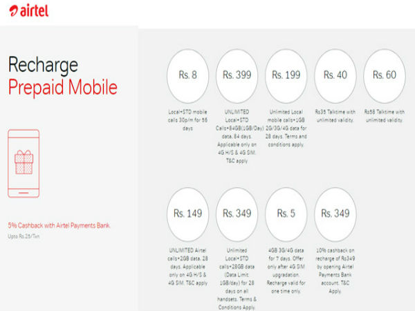 ಜಿಯೋ ವಿವಿಧ ರಿಚಾರ್ಜ್ ಗಳಿಗೆ ವಿವಿಧ ಆಫರ್ ಗಳನ್ನು ನೀಡಿತ್ತು, ಗ್ರಾಹಕರು ತಮ್ಮ ಆಯ್ಕೆಯ ರೀಚಾರ್ಜ್ ಮಾಡಿಸಿಕೊಳ್ಳಬಹುದಾಗಿತ್ತು. ಸದ್ಯ ಇದೇ ಮಾದರಿಯಲ್ಲಿ ಏರ್ಟೆಲ್ ಸಹ ವಿವಿಧ ಶ್ರೇಣಿಯ ರಿಚಾರ್ಜ್ ಪ್ಲಾನ್ಗಳನ್ನು ಬಿಡುಗಡೆ ಮಾಡಿದೆ.