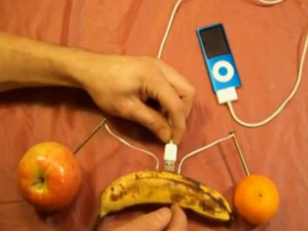 ಹೌದು ಹಣ್ಣು/ತರಕಾರಿ ಬಳಸಿ ಫೋನ್ ಚಾರ್ಜ್ ಮಾಡಬಹುದಾಗಿದೆ. ಜಿಂಕ್ ಮತ್ತು ಕೋಪರ್ ಅಂಶಗಳನ್ನು ಹಣ್ಣಿಗೆ ಸೇರಿಸಿ ಫ್ರುಟ್ ಚಾರ್ಜರ್ ತಯಾರಿಸಿ ನಿಮ್ಮ ಮೊಬೈಲ್ಗೆ ಚಾರ್ಜ್ ಮಾಡಬಹುದಾಗಿದೆ.