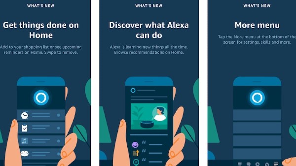 ಇದಲ್ಲದೆ ಹೊಸ ಬಳಕೆದಾರರು ಅಲೆಕ್ಸಾವನ್ನು ಹೇಗೆ ಪ್ರಾರಂಭಿಸಬೇಕು ಮತ್ತು ಮ್ಯೂಸಿಕ್ ಅನ್ನು ಪ್ಲೇ ಮಾಡುವುದು ಅಥವಾ ಅವರ ಶಾಪಿಂಗ್ ಪಟ್ಟಿಯನ್ನು ನಿರ್ವಹಿಸುವುದು ಮುಂತಾದ ವಿವಿಧ ವಿಷಯಗಳಿಗೆ ಹೇಗೆ ಬಳಸಬಹುದು ಎನ್ನುವ ಸಲಹೆಗಳನ್ನ ಹೋಮ್ಸ್ಕ್ರೀನ್ನಲ್ಲಿ ಕಾಣಬಹುದಾಗಿದೆ. ಅಲ್ಲದೆ ಹೆಚ್ಚುವರಿ ಆಯ್ಕೆಗಳನ್ನು ಡಿಸ್ಪ್ಲೇ ಮೇಲಿನ ಎಡಭಾಗದಲ್ಲಿರುವ ಮೆನು ಅಥವಾ ಇನ್ನಷ್ಟು ಆಯ್ಕೆಯನ್ನು ಹೋಮ್ಸ್ಕ್ರೀನ್ನ ಕೆಳಗಿನ ಬಲಕ್ಕೆ ಸರಿಸಲಾಗಿದೆ. ಟ್ಯಾಬ್ ನಲ್ಲಿ ಈಗ "ಪಟ್ಟಿಗಳು ಮತ್ತು ಟಿಪ್ಪಣಿಗಳು", "ಜ್ಞಾಪನೆಗಳು ಮತ್ತು ಅಲಾರಮ್ಗಳು", "ದಿನಚರಿಗಳು" ಮತ್ತು ಹೆಚ್ಚಿನ ಆಯ್ಕೆಗಳನ್ನು ನೀಡಲಾಗಿದೆ.
