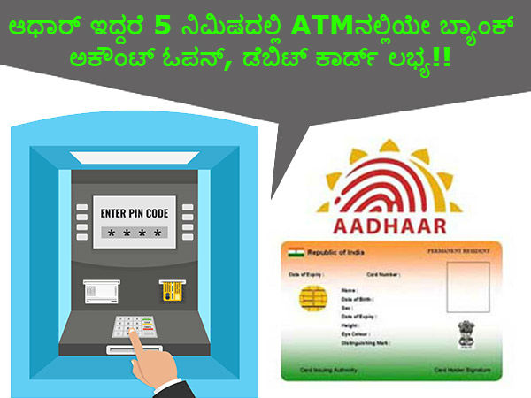 ಆಧಾರ್ ಇದ್ದರೆ 5 ನಿಮಿಷದಲ್ಲಿ ATMನಲ್ಲಿಯೇ ಬ್ಯಾಂಕ್ ಅಕೌಂಟ್ ಓಪನ್, ಡೆಬಿಟ್ ಕಾರ್ಡ್ ಲಭ್ಯ!!