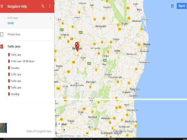ಎಲ್ಲೆಲ್ಲಿ ಟ್ರಾಫಿಕ್ ಜಾಮ್ ಇದೆ, ಸಿಲ್ಕ್ ಬೋರ್ಡ್ ಟ್ರಾಫಿಕ್ ಜಾಮ್, ಇತರ ಪ್ರದೇಶದಲ್ಲಿರುವ ಟ್ರಾಫಿಕ್ ಜಾಮ್ ವಿವರಗಳನ್ನು ನೀವು ಈ ಮ್ಯಾಪ್ ಮೂಲಕ ಪಡೆದುಕೊಳ್ಳಬಹುದಾಗಿದೆ. ಈ ಮ್ಯಾಪ್ನಲ್ಲಿ ಬೇರೆ ಬೇರೆ ಕ್ಯಾಟಗರಿಯನ್ನು ನೀಡಲಾಗಿದ್ದು ಇಲ್ಲಿ ಟ್ರಾಫಿಕ್ ಜಾಮ್ ಕುರಿತು ವಿವರಗಳನ್ನು ಪಡೆದುಕೊಳ್ಳಬಹುದಾಗಿದೆ.