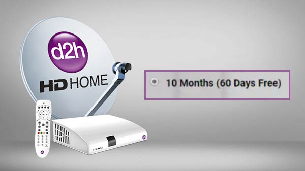 10 ತಿಂಗಳ ಕನೆಕ್ಷನ್ ನ್ನು ಪಡೆದವರಿಗೆ ಡಿಶ್ ಟಿವಿ 2 ತಿಂಗಳ ಉಚಿತ ಸೇವೆಯನ್ನು ನೀಡುತ್ತದೆ. ಅಂದರೆ ಬಳಕೆದಾರರು 12 ತಿಂಗಳ ಸೇವೆಯನ್ನು ಕೇವಲ 10 ತಿಂಗಳ ರೀಚಾರ್ಜ್ ಮಾಡುವ ಮೂಲಕ ಪಡೆದುಕೊಳ್ಳಬಹುದು. ಅದೇ ರೀತಿ 6 ತಿಂಗಳ ಚಂದಾದಾರಿಕೆಯನ್ನು ಪಡೆದವರು ಒಂದು ತಿಂಗಳ ಹೆಚ್ಚುವರಿ ಸೇವೆಯನ್ನು ಪಡೆದುಕೊಳ್ಳಬಹುದು. ಅಂದರೆ 7 ತಿಂಗಳ ಚಂದಾದಾರಿಕೆಯನ್ನು ಕೇವಲ 6 ತಿಂಗಳಿಗೆ ರೀಚಾರ್ಜ್ ಮಾಡುವ ಮೂಲಕ ಪಡೆದುಕೊಳ್ಳುವುದಕ್ಕೆ ಬಳಕೆದಾರರಿಗೆ ಅವಕಾಶವಿರುತ್ತದೆ.