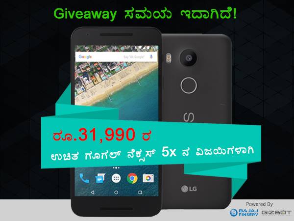 ಆದ್ದರಿಂದ ಗಿಜ್ಬಾಟ್ ಓದುಗರೇ, ನಿಮ್ಮ ಸ್ಮಾರ್ಟ್ಫೋನ್ನಲ್ಲಿ ಬಜಾಜ್ ಫಿನ್ಸರ್ವ್ ಎಕ್ಸ್ಪೀರಿಯಾವನ್ನು ಪ್ರಯತ್ನಿಸುವ ಸಮಯ ಇದಾಗಿದೆ ಜೊತೆಗೆ ಸ್ಪರ್ಧೆಯಲ್ಲೂ ಉತ್ಸಾಹದಿಂದ ಪಾಲ್ಗೊಳ್ಳಿ. ಎಲ್ಜಿ ತಯಾರಿಕೆಯ ಗೂಗಲ್ ನೆಕ್ಸಸ್ 5x ಅನ್ನು ನಿಮ್ಮದಾಗಿಸಿಕೊಳ್ಳುವ ಸುವರ್ಣವಕಾಶ ನಿಮಗೆ ಒದಗಿ ಬಂದಿದೆ.