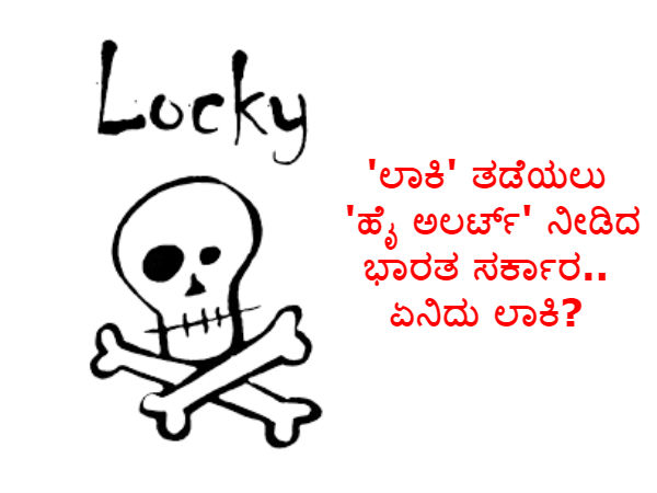ವನ್ನಾ ಕ್ರೈ ವೈರಸ್ ದಾಳಿಯ ನಂತರ ಮತ್ತೊಂದು ವೈರಸ್ ಭೂತ ಪ್ರಪಂಚದಾಧ್ಯಂತ ಕಾಲಿಟ್ಟಿದೆ.!! ವನ್ನಾ ಕ್ರೈ ವೈರಸ್ ದಾಳಿಯ ರೀತಿಯಲ್ಲಿಯೇ ದಾಳಿ ನಡೆಸುತ್ತಿರುವ ಈ ವೈರೆಸ್ಗೆ ಲಾಕಿ ರ್ಯಾನ್ಸಮ್ ವೇರ್ ಎಂದು ಹೆಸರಿಡಲಾಗಿದ್ದು, "ಹೈ ಅಲರ್ಟ್" ಎನ್ನುವ ಸೂಚನೆಯೊಡನೆ ಸರ್ಕಾರ ಎಲ್ಲರಿಗೂ ಎಚ್ಚರಿಕೆ ನೀಡಿದೆ.!!