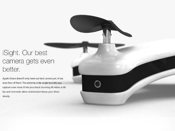 ಹೆಚ್ಚಿನ ಮುಖ್ಯ ಟೆಕ್ ಕಂಪೆನಿಗಳು ಡ್ರೋನ್ಗಳ ಮೇಲೆ ತಮ್ಮ ಕಣ್ಣಿಟ್ಟಿವೆ. ಅಮೆಜಾನ್, ಗೂಗಲ್ ಮತ್ತು ಫೇಸ್ಬುಕ್ ಕೂಡ ಇದಕ್ಕೆ ಹೊರತಾಗಿಲ್ಲ. ಆಪಲ್ ವಿನ್ಯಾಸಕಾರರೊಬ್ಬರು ಡ್ರೋನ್ ಹೇಗಿರಬಹುದೆಂಬ ಕಲ್ಪನಾ ಚಿತ್ರವನ್ನು ರೂಪಿಸಿದ್ದು ಕಂಪೆನಿ ಇಂತಹುದ್ದನ್ನೇ ಹೊರತರಲಿದೆಯೇ ಎಂಬುದು ರಹಸ್ಯವಾಗಿದೆ. [ಹೊಸ ಐಫೋನ್ ವಿನ್ಯಾಸ ಹೇಗಿದೆ ಗೊತ್ತೇ?]