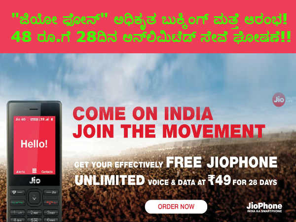 ಕಮ್ ಆನ್ ಇಂಡಿಯಾ' ಎಂಬ ಸ್ಲೋಗನ್ ಮೂಲಕ ಜಿಯೋ ಫೋನ್ ಅಧಿಕೃತ ಬುಕ್ಕಿಂಗ್ ಮತ್ತೆ ಆರಂಭವಾಗಲಿದ್ದು, ಕೇವಲ 48 ರೂಪಾಯಿಗಳಿಗೆ ಜಿಯೋ ಸಂಪೂರ್ಣ ಸೇವೆಯನ್ನು ಈ ಫೋನ್ ಜೊತೆಗೆ ಪಡೆಯಬಹುದಾಗಿದೆ.!!