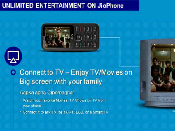 ಜಿಯೋಫೋನ್ನಿಂದ ಟಿವಿ ಕೂಡ ಕನೆಕ್ಟ್ ಮಾಡಬಹುದಾದ ಆಯ್ಕೆ ಹೊಂದಿದ್ದು, ನೀವು ಯಾವುದೇ ರೀತಿಯ TV ಯೊಂದಿಗೆ ನಿಮ್ಮ JioPhone ಅನ್ನು ಸಂಪರ್ಕಿಸಬಹುದು.!!