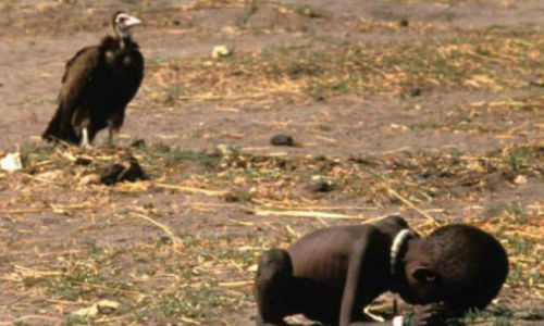 ಈ ಒಂದು ಫೋಟೋದಿಂದ ಸುಡಾನ್ ಪರಿಸ್ಥಿತಿಯನ್ನು ಜಗತ್ತಿಗೆ ತಿಳಿಸಿದ ವಿಶ್ವದ ಶ್ರೇಷ್ಟ ಫೋಟೋ ಜರ್ನಲಿಸ್ಟ್ ಹೆಸರು ಕೆವಿನ್ ಕಾರ್ಟರ್. ಸುಡಾನ್ಲ್ಲಿ ವಿಶ್ವಸಂಸ್ಥೆ ತೆರೆದಿದ್ದ ಆಹಾರ ಕೇಂದ್ರದತ್ತ ತೆವಳಿಕೊಂಡು ಹೋಗುತ್ತಿರುವ ಆನಾಥ ಮಗು.. ಅದರ ಪಕ್ಕದಲ್ಲೇ ತನ್ನ ಆಹಾರಕ್ಕಾಗಿ ಮಗುವನ್ನು ಸಾಯಿಸಲು ಹವಣಿಸಿತ್ತಿರುವ ರಣಹದ್ದು. ಈ ದೃಶ್ಯವನ್ನು ಹತ್ತು ಮೀಟರ್ ಆಂತರದಿಂದ ತೆಗೆದ ಫೋಟೋ ವಿಶ್ವದ ಜನತೆಯ ಸುಡಾನ್ನಲ್ಲಿ ಎಷ್ಟು ಬರಗಾಲವಿದೆ ಎಂದು ಅರ್ಥೈಸಲು ಸಾಧ್ಯವಾಯಿತು. ಈ ಚಿತ್ರಕ್ಕೆ ಕೊನೆಗೆ ಪ್ರತಿಷ್ಠಿತ ಪುಲಿಟ್ಜರ್ ಪ್ರಶಸ್ತಿ ಸಿಕ್ಕಿತು.