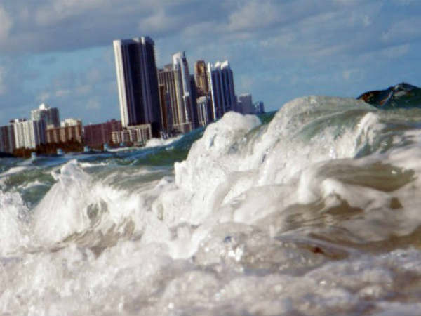 ಮೀಟರ್ನಷ್ಟು ಸಾಗರದ ಮಟ್ಟ ಏರಿಕೆಯಾಗಿರುವುದರಿಂದ ಮಿಯಾಮಿ, ಫ್ಲೋರಿಡಾ ಹೇಗೆ ಕಾಣಿಸುತ್ತದೆ ಎಂಬುದರ ಚಿತ್ರವನ್ನು ಆಂಡ್ರ್ಯೂ ಡೇವಿಡ್ ತೇಲರ್ ವಿನ್ಯಾಸಪಡಿಸಿದ್ದಾರೆ.