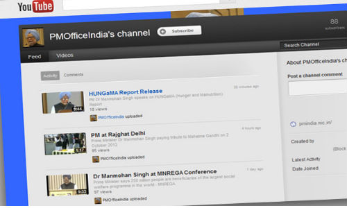 ಈಗ ಪ್ರಧಾನಮಂತ್ರಿಗಳ ಕಾರ್ಯಾಲಯವು ವೀಡಿಯೋಗಳ ಮೂಲಕವೂ ಜನರನ್ನು ತಲುಪಲು ಯೂಟ್ಯೂಬ್ ನಲ್ಲಿ ಖಾತೆ ತೆರೆದಿದೆ. ಯು.ಪಿ.ಏ ಸರ್ಕಾರದ ಪ್ರಮುಖ ಯೋಜನೆಯಾದ ಮಹಾತ್ಮ ಗಾಂಧಿ ರಾಷ್ಟ್ರೀಯ ಗ್ರಾಮೀಣ ಉದ್ಯೋಗ ಖಾತರಿ ಯೋಜನೆ (MGNREGA)ಗೆ ಸಂಬಂಧಿಸಿದ ಸಭೆಯಲ್ಲಿ ಪ್ರಧಾನಿ ಮಾತಾಡಿರುವ ವೀಡಿಯೊವನ್ನು ಮೊದಲಿಗೆ ಅಪ್ಲೋಡ್ ಮಾಡಿದೆ. ಹಾಗೆಯೇ ಕಳೆದ ಅಕ್ಟೋಬರ್ 2 ರಂದು ಮಹಾತ್ಮ ಗಾಂಧಿ ಯವರ ಹುಟ್ಟುಹಬ್ಬದಂದು ಪ್ರಧಾನಿ ರಾಜ್ ಘಾಟ್ಗೆ ಸಿಂಗ್ ಭೇಟಿ ನೀಡಿದ ವೀಡಿಯೋಕೂಡ ಅಪ್ಲೋಡ್ ಮಾಡಲಾಗಿದೆ.