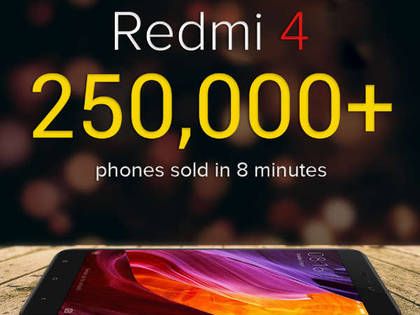 ಮೇ 23 ರಂದು ಫ್ಲಾಶ್ ಸೇಲಿನಲ್ಲಿ ಮಾರಾಟಗೊಂಡ ರೆಡ್ಮಿ 4 ಕೇಲವ 8 ನಿಮಿಷದಲ್ಲಿ 2.5 ಲಕ್ಷ ಫೋನ್ ಗಳು ಗ್ರಾಹಕರ ಕೈ ಸೇರಿತ್ತು. ಈ ಮೂಲಕ ಶಿಯೋಮಿ ಭಾರತದಲ್ಲಿ ಹೊಸ ಭಾಷ್ಯವನ್ನು ಬರೆದಿದೆ.
