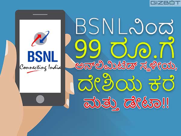 BSNL ನಿಂದ 99 ರೂ.ಗೆ ಅನ್ಲಿಮಿಟೆಡ್ ಸ್ಥಳೀಯ, ದೇಶಿಯ ಕರೆ ಮತ್ತು ಡೇಟಾ!!