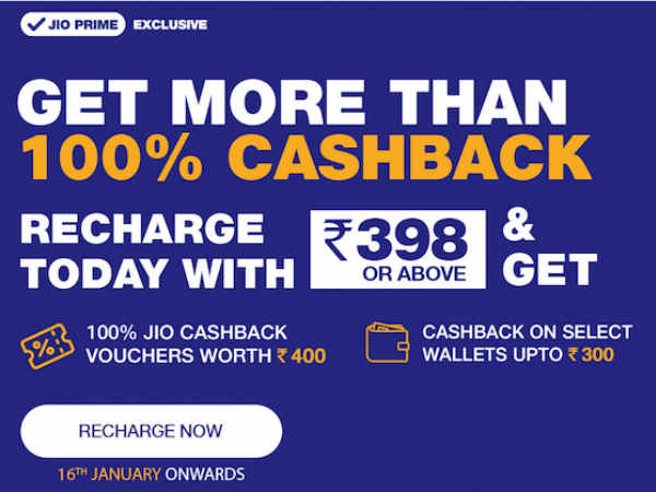 ಜಿಯೋ ಬಳಕೆದಾರರಿಗೆ ಮಾತ್ರ: ರೂ.398ಕ್ಕೆ ರೀಚಾರ್ಜ್ ಮಾಡಿಸಿ ರೂ.700 ಕ್ಯಾಷ್ ಬ್ಯಾಕ್ ಪಡೆಯುವುದು ಹೇಗೆ..!