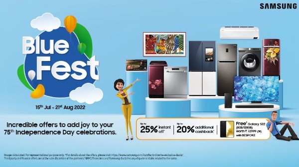 ಹೌದು, ಸ್ಯಾಮ್ಸಂಗ್ ಕಂಪೆನಿ ಬ್ಲೂ ಫೆಸ್ಟ್ ಆಫರ್ ಪ್ರಕಟಿಸಿದೆ. ಇದರಲ್ಲಿ ಸ್ಯಾಮ್ಸಂಗ್ನ ಪ್ರೀಮಿಯಂ ಟೆಲಿವಿಷನ್ಗಳು, ರೆಫ್ರಿಜರೇಟರ್ಗಳು, ಡಿಶ್ವಾಶರ್ಗಳು, ಮೈಕ್ರೋವೇವ್ ಓವನ್ಗಳು ಮತ್ತು ಸೌಂಡ್ಬಾರ್ಗಳ ಮೇಲೆ ಬಿಗ್ ಆಫರ್ ದೊರೆಯಲಿದೆ. ಇನ್ನು ಬ್ಲೂ ಫೆಸ್ಟ್ 2.0 ಆಫರ್ಗಳು ಈಗಾಗಲೇ ಲೈವ್ ಆಗಿದ್ದು, ಆಗಸ್ಟ್ 21, 2022 ರವರೆಗೆ ನಡೆಯಲಿದೆ. ಸ್ಯಾಮ್ಸಂಗ್ನ ಬ್ಲೂ ಫೆಸ್ಟ್ ಆಫರ್ ಸ್ಯಾಮ್ಸಂಗ್ನ ಅಧಿಕೃತ ಆನ್ಲೈನ್ ಸ್ಟೋರ್, ಸ್ಯಾಮ್ಸಂಗ್ ಶಾಪ್ ಮತ್ತು ದೇಶಾದ್ಯಂತ ಎಲ್ಲಾ ಪ್ರಮುಖ ಗ್ರಾಹಕ ಎಲೆಕ್ಟ್ರಾನಿಕ್ಸ್ ರಿಟೇಲ್ ಸ್ಟೋರ್ಗಳಲ್ಲಿ ಮಾನ್ಯವಾಗಿರಲಿದೆ.