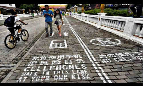 ಚೀನಾದ ನಗರವಾದ ಚಾಗಿಂಗ್, ಫೋನ್ ಬಳಕೆದಾರರಿಗೆ ರಸ್ತೆಯಲ್ಲಿ ಕಾಲದಾರಿಯನ್ನು ನಿರ್ಮಿಸಿದೆ. 50 ಮೀಟರ್ ಉದ್ದದ ಕಾಲುದಾರಿಯ ರಚನೆಯ ಮುಖ್ಯ ಉದ್ದೇಶವಾಗಿದೆ ರಸ್ತೆಯಲ್ಲಿ ಸಂಚರಿಸುವ ಫೋನ್ ಬಳಕೆದಾರರಿಗೆ ಯಾವುದೇ ಅಪಘಾತ ಉಂಟಾಗಬಾರದು ಎಂಬುದಾಗಿದೆ. ಬಳಕೆದಾರರು ಫೋನ್ನ ಮೇಲೆ ನಿಗಾ ಇರಿಸಿರುವ ಸಂದರ್ಭದಲ್ಲಿ ರಸ್ತೆಯಲ್ಲಿ ಅವರ ಓಡಾಟ ಕಷ್ಟವಾಗಿರುತ್ತದೆ ಇದಕ್ಕಾಗಿ ಅಲ್ಲಿನ ಸರಕಾರ ಈ ರೀತಿಯ ಕ್ರಮವನ್ನು ಜಾರಿ ಮಾಡಿದೆ.