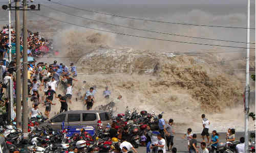 ಇಂದಿನ ಲೇಖನದಲ್ಲಿ ಚೀನಾದಲ್ಲಿ ನಡೆದ ಟೈಡಲ್ ವೇವ್ ಕುರಿತಾದ ಕೆಲವೊಂದು ಚಿತ್ರಗಳನ್ನು ನಾವಿಲ್ಲಿ ನೀಡುತ್ತಿದ್ದೇವೆ. ಈ ಟೈಡಲ್ ಬೋರ್ ಬೃಹತ್ ಅಲೆ ವಿಶ್ವದಲ್ಲೇ ಅತ್ಯಂತ ದೊಡ್ಡದಾದುದು. ಇದರ ಎತ್ತರ 11.5 ಫೀಟ್ ಆಗಿದೆ. ಚೀನಾದ ಪೂರ್ವ ಸಮುದ್ರದಲ್ಲಿ ಕಾಣಿಸಿಕೊಂಡ ಈ ಬೃಹತ್ ಅಲೆ ಚೀನಾದಲ್ಲಿ ಹೆಚ್ಚಿನ ಕಂಪನವನ್ನೇ ಉಂಟುಮಾಡಿತ್ತು.