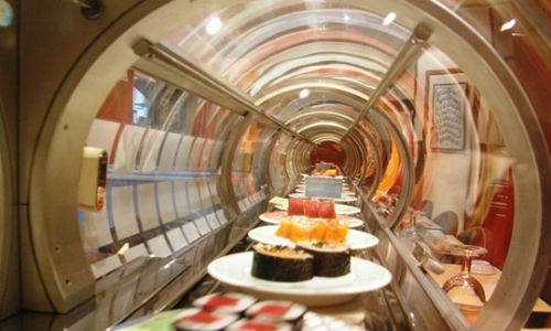 ಜಪಾನಿನ ಟೋಕಿಯೋದಲ್ಲಿ ಸಂಪೂರ್ಣ ಕಂಪ್ಯೂಟರ್ ಮೂಲಕ ನಿಯಂತ್ರಣ ಮಾಡಬಹುದಾದ ಸುಶಿ ಹೊಟೇಲ್ ಈ ವ್ಯವಸ್ಥೆ ಹೊಂದಿದ್ದು, ಗ್ರಾಹಕರು ಆರ್ಡರ್ ಮಾಡಿದ ತಕ್ಷಣ ಅಡುಗೆ ಕೋಣೆಯಲ್ಲಿರುವ ಸಿಬ್ಬಂದಿಗಳು ಚೆಕ್ ಮಾಡಿ ತಿಂಡಿಯನ್ನು ಕೂಡಲೇ ತಯಾರಿಸಿ ಚಲಿಸುವ ಬೆಲ್ಟ್ನಲ್ಲಿ ಸಿಬ್ಬಂದಿ ಇಡುತ್ತಾರೆ. ಆ ಬೆಲ್ಟ್ನಲ್ಲಿರುವ ತಿಂಡಿ ಆರ್ಡರ್ ಮಾಡಿದ ವ್ಯಕ್ತಿ ಕುಳಿತ ಸ್ಥಳದಲ್ಲಿ ಬಂದು ನಿಲ್ಲುತ್ತದೆ.