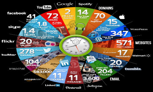 ಈ ಮಾಹಿತಿಯಲ್ಲಿ ಒಂದು ನಿಮಿಷದಲ್ಲಿ ಫೇಸ್ಬುಕ್ನಲ್ಲಿ ಎಷ್ಟು ಲೈಕ್, ಎಷ್ಟು ಪೋಸ್ಟ್ ದಾಖಲಾಗುತ್ತದೆ, ಯೂ ಟ್ಯೂಬ್ನಲ್ಲಿ ಎಷ್ಟು ಗಂಟೆಯ ವೀಡಿಯೋ ಅಪ್ಲೋಡ್ ಆಗುತ್ತದೆ, ಟ್ವೀಟರ್ನಲ್ಲಿ ಎಷ್ಟು ಟ್ವೀಟ್ಗಳು ದಾಖಲಾಗುತ್ತವೆ ಎನ್ನುವ ಮಾಹಿತಿಯ ಜೊತೆಗೆ ಗೂಗಲ್, ಫ್ಲಿಕ್ಕರ್,ಸ್ಕೈಪ್ ಸೇರಿದಂತೆ ಟಾಪ್ ಸೈಟ್ಗಳಲ್ಲಿ ಏನೆಲ್ಲಾ ಚಟುವಟಿಕೆಗಳು ನಡೆಯುತ್ತವೆ ಎಂದು ತೋರಿಸುವ ಮಾಹಿತಿಗಳಿವೆ. ಈ ಮಾಹಿತಿಯ ಜೊತೆಗೆ ಕಳೆದ ವರ್ಷ Go-Globe.com ನವರು ಸಿದ್ದ ಪಡಿಸಿದ ಮಾಹಿತಿ ಸಹ ಇಲ್ಲಿದೆ.ಹೀಗಾಗಿ ಇಲ್ಲಿ ಈ ಎರಡು ವೆಬ್ಸೈಟ್ಗಳು ನೀಡಿರುವ ಮಾಹಿತಿ ಇಲ್ಲಿದ್ದು ಒಂದೊಂದೆ ಪುಟವನ್ನು ತಿರುಗಿಸಿ ನೋಡಿಕೊಂಡು ಹೋಗಿ.