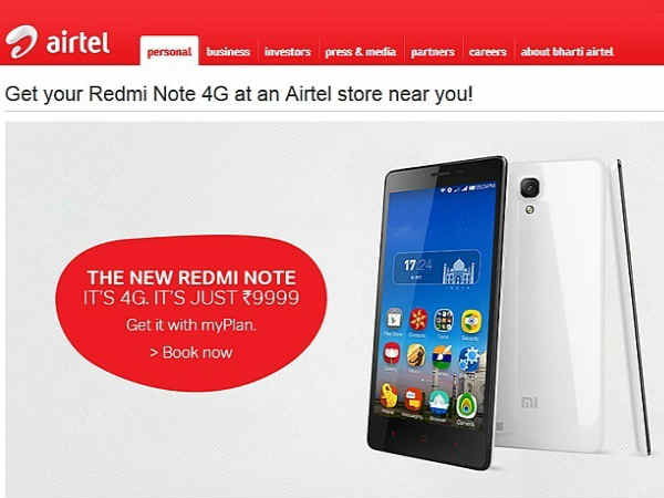 4ಜಿ ಡೇಟಾ ಒಳಗೊಂಡಂತೆ ತನ್ನದೇ ಪೋಸ್ಟ್ ಪೇಡ್ ಯೋಜನೆಗಳೊಂದಿಗೆ ಏರ್ಟೆಲ್ ಶ್ಯೋಮಿ ರೆಡ್ಮೀ ನೋಟ್ 4 ಜಿ ಸ್ಮಾರ್ಟ್ಫೋನ್ ಅನ್ನು ಮಾರಾಟ ಮಾಡುತ್ತಿದೆ. ಇ ಕಾಮರ್ಸ್ ವೆಬ್ಸೈಟ್ ಆದ ಫ್ಲಿಪ್ಕಾರ್ಟ್ನಲ್ಲಿ ಸ್ಮಾರ್ಟ್ಫೋನ್ ಲಭ್ಯವಿದ್ದು ಏರ್ಟೆಲ್ ಫೋನ್ ಅನ್ನು ಮಾರಾಟ ಮಾಡುತ್ತಿದ್ದರೂ ಫೋನ್ ಅನ್ನು ಖರೀದಿಸುವವರು ಫ್ಲಿಪ್ಕಾರ್ಟ್ನಲ್ಲೇ ಡಿವೈಸ್ ಅನ್ನು ಖರೀದಿಸಬೇಕಾಗುತ್ತದೆ.