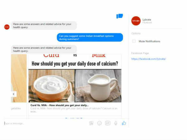 ಅಂದಹಾಗೆ ಲೈಬ್ರೇಟ್ ಬೋಟ್ ಫೇಸ್ಬುಕ್ ಮೆಸೇಂಜರ್ ಆಪ್ನಲ್ಲಿ ಮತ್ತೊಂದು ಚಾಟ್ ಲೀಸ್ಟ್ ಆಗಿದೆ. ಇದು ಡಾಕ್ಟರ್ಗಳಿಂದ ಆರೋಗ್ಯ ಕುರಿತ ಸಲಹೆಗಳು ಮತ್ತು ಮಾಹಿತಿಯನ್ನು ತಿಳಿಯಲು ಸಂವಹನ ಕಲ್ಪಿಸುತ್ತದೆ.